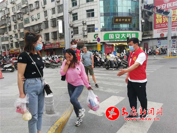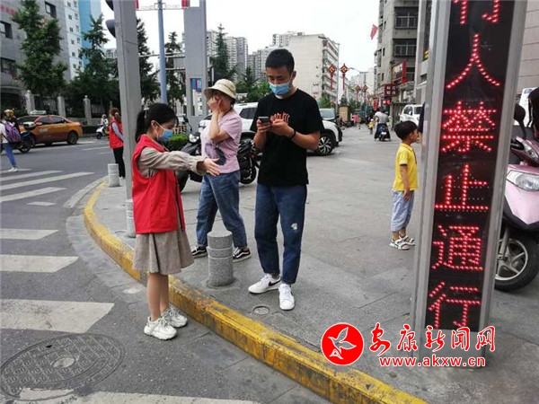 “你好,請走人行道”“綠燈亮了,再過斑馬線”……戴著口罩,統(tǒng)一身穿紅色馬甲的文明勸導(dǎo)員,在十字路口溫馨地對過往行人勸導(dǎo)著。