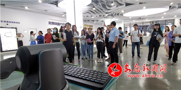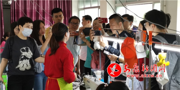采訪團一行首先來到漢濱區(qū)譚壩鎮(zhèn)松壩社區(qū)毛絨玩具工廠、安康扶貧空間、富硒產(chǎn)品研發(fā)中心和南水北調(diào)監(jiān)測中心實地采訪,大家認真聆聽、仔細記錄,生怕錯過精彩的細節(jié)。社區(qū)工廠里村民們一副副笑臉,扶貧超市里琳瑯滿目的扶貧特產(chǎn)、富硒產(chǎn)品研發(fā)中心里圍繞脫貧產(chǎn)業(yè)的科學(xué)成果,無不蘊含著人民群眾的幸福感,而幸福生活的堅實基礎(chǔ)是安康近年來經(jīng)濟社會加快發(fā)展步伐顯現(xiàn)的成果。幾位采訪團成員告訴我,他們隨時拍,隨時采,隨時傳回去編輯、制作,盡早把安康兒女走向小康的精神面貌傳達給全國人民。
