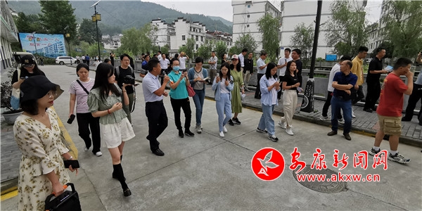 在饒峰鎮(zhèn)勝利村,采訪團圍著村支書楊衛(wèi)東,聽他講述勝利村是如何從“后進村”變成現(xiàn)在產(chǎn)業(yè)興、旅游旺的新村故事。勝利村村民借助饒峰驛站這個扶貧基地實現(xiàn)了增收,而饒峰驛站也給周圍村子帶來了發(fā)展機遇。毗鄰的村發(fā)展起了民宿經(jīng)濟,建成30余家農(nóng)家樂和民宿,還開了5家小商店。光明日報記者王遠方說,“這幾日采訪的過程中我感到,幸福感畫在老百姓的臉上,體現(xiàn)在他們言談舉止中”。