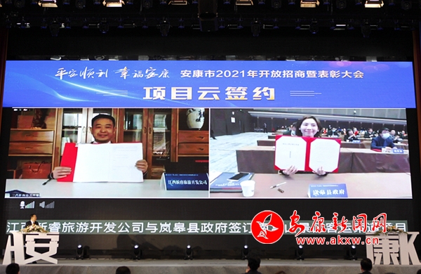 會上通報了全市經(jīng)濟(jì)社會發(fā)展情況,總結(jié)了全市招商引資工作、推介了重點投資領(lǐng)域,聘任了禹國剛等6人為開放發(fā)展高級顧問,表彰了2020年度招商引資工作先進(jìn)單位、先進(jìn)個人和返鄉(xiāng)創(chuàng)業(yè)優(yōu)秀企業(yè)家,兌現(xiàn)了第二輪毛絨玩具文創(chuàng)產(chǎn)業(yè)發(fā)展基金。據(jù)悉,大會采取線上線下聯(lián)動、域內(nèi)域外協(xié)同的方式進(jìn)行,現(xiàn)場共簽約合同項目11個,總投資77.7億元。佛山市陜西商會、中山市陜西商會、上海安康商會、廣東省安康商會、西安安康商會、北京安康商會籌委會、杭州安康商會籌委會、中鐵建發(fā)展集團(tuán)、上港物流、深圳市中小企業(yè)聯(lián)誼會等各地商協(xié)會和企業(yè)客商及新聞媒體代表5000余人通過網(wǎng)絡(luò)平臺在線參加或收看大會。