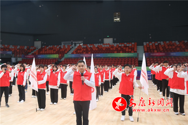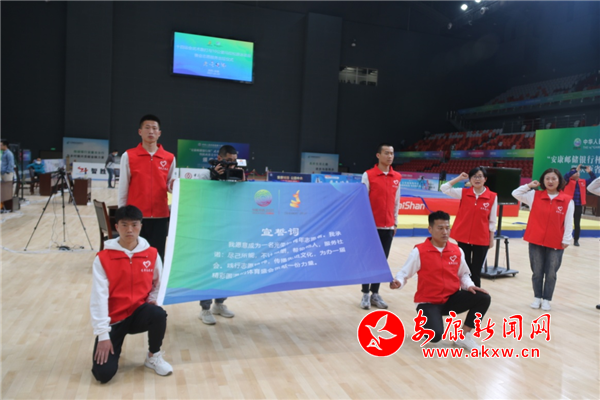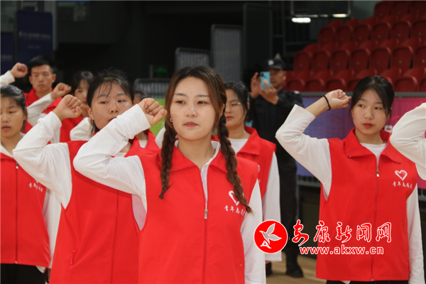 隨后市委文明辦思想道德建設(shè)科科長、項目競委會志愿者和觀眾服務(wù)處副處長劉獻(xiàn)兵帶領(lǐng)全場志愿者進(jìn)行宣誓。大家鏗鏘有力的宣讀著誓詞:“我愿意成為一名光榮的青年志愿者。我承諾:盡己所能,不計報酬,幫助他人,服務(wù)社會。踐行志愿精神,傳播先進(jìn)文化,為辦一屆精彩圓滿的體育盛會貢獻(xiàn)一份力量。”
