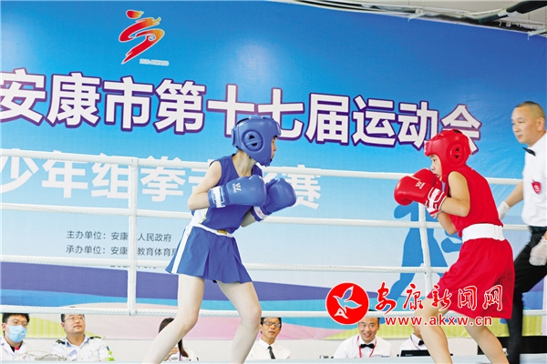 5月18日,十七運的青少年組拳擊比賽激戰(zhàn)正酣,拳手們你來我往獻(xiàn)上了一場場精彩的比賽。競賽期間,安康市體育運動服務(wù)管理中心武術(shù)散打拳擊總教練馬宜君接受記者采訪時說:“2011年,我市開始發(fā)展拳擊項目,當(dāng)時只有1名石泉女隊員。在教體局的支持下,隊伍慢慢壯大。2018年的省運會上,我市的拳擊項目獲得金牌5枚、銀牌4枚、銅牌9枚,團(tuán)體總分第一的成績。”