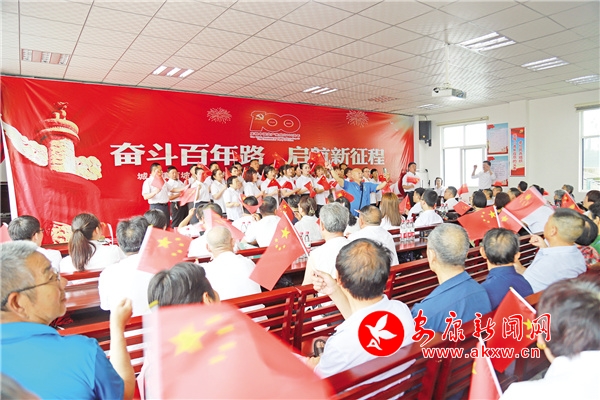 (6月25日,嵐皋縣城關(guān)鎮(zhèn)西坡社區(qū)黨總支部委員會、共駐共建單位200余名黨員和群眾歡聚一堂,舉行“奮斗百年路·啟航新征程”活動。廖霖 攝)