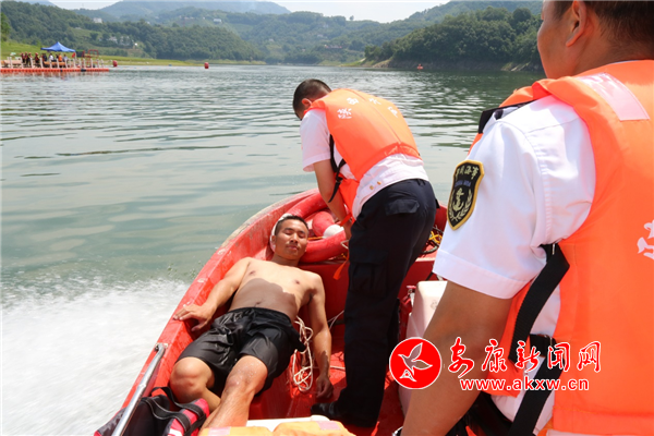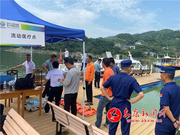 自然水域水上競賽項(xiàng)目安全保障有著迥異于陸地項(xiàng)目的難點(diǎn):地域廣闊,事發(fā)地與醫(yī)療施救地距離較遠(yuǎn);運(yùn)動(dòng)員賽中意外發(fā)生地地形復(fù)雜,施救難度大,運(yùn)載距離長,需要公安、消防、海事、醫(yī)療、屬地管控等水陸緊密高效協(xié)調(diào)配合才行。十四運(yùn)會安康競委會全程堅(jiān)持底線思維,始終將安全保障工作置于重要位置,在前期有效舉行陸路交通、水上救援綜合演練等基礎(chǔ)上,再次匯集各方力量舉行運(yùn)動(dòng)員賽中遇險(xiǎn)專項(xiàng)全要素救援演練,切實(shí)做好確保馬拉松游泳測試賽安全保障工作。