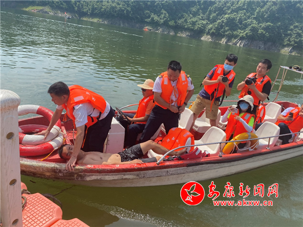 本網(wǎng)訊(實(shí)習(xí)記者 劉淵)6月30日上午,十四運(yùn)會安康市競委會安保處協(xié)同市應(yīng)急管理局、市消防救援支隊(duì)、市公安局、海事局、瀛湖管委會、安康市中心醫(yī)院、安文旅公司、漢濱區(qū)公安局等單位在瀛湖翠屏島附近公開水域組織開展馬拉松游泳賽事運(yùn)動(dòng)員遇險(xiǎn)全要素應(yīng)急救援綜合演練。