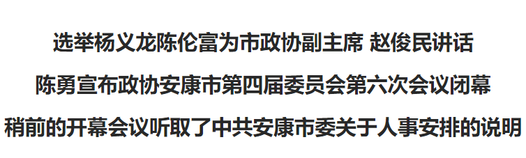 會(huì)議聽取了中共安康市委關(guān)于人事安排的說(shuō)明。