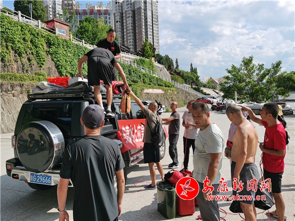 當(dāng)天下午3時(shí),積極籌備了一天多,集結(jié)待命在漢江邊的安康漢江志愿者救生隊(duì)終于接到上級(jí)命令,隊(duì)長(zhǎng)周云康帶領(lǐng)操舟手呂小兵、皮劃艇劃手朿東源和司機(jī)古春興出發(fā)馳援河南,隊(duì)員們頂著烈日前來(lái)為他們送行。