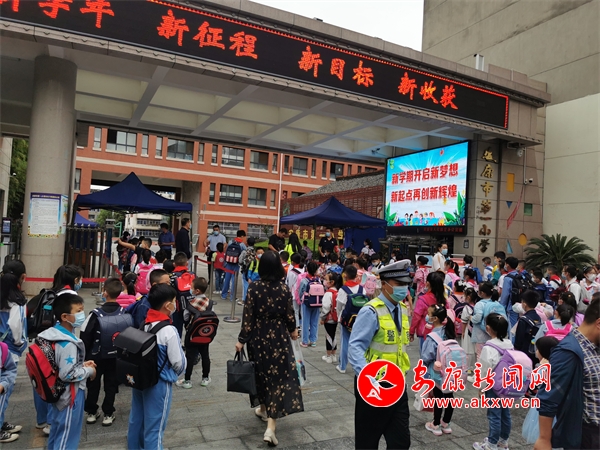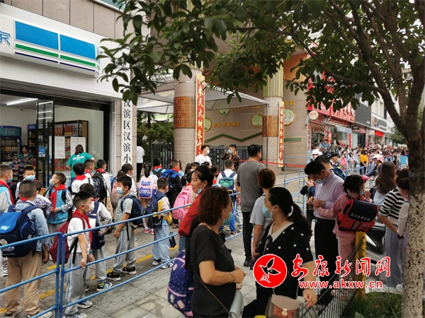 9月1日,新學(xué)期如期開學(xué),安康中心城區(qū)的漢濱小學(xué)、安康陽光學(xué)校、安康市第一小學(xué)的門口秩序井然,小學(xué)生們戴著口罩,精神抖擻排著隊(duì)等候進(jìn)入校園。公安、城管在現(xiàn)場加強(qiáng)疏導(dǎo),學(xué)校周邊交通秩序正常,祝小小少年,健康成長,揚(yáng)帆遠(yuǎn)航。(鄭時(shí)根 攝)BDD安康新聞網(wǎng)