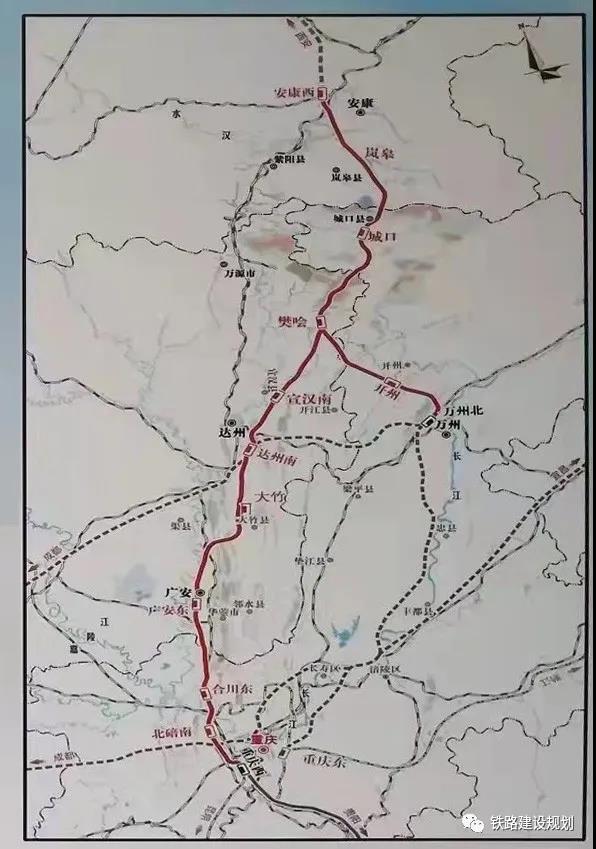 項(xiàng)目起自在建西安至安康高速鐵路安康西站,經(jīng)嵐皋、城口、宣漢、達(dá)州、大竹、廣安、合川、北碚,至重慶樞紐重慶西站,線路全長(zhǎng)477.9公里(其中新建線路446.7公里),設(shè)11座車站;同步建設(shè)樊噲經(jīng)開(kāi)州至萬(wàn)州連接線,長(zhǎng)90.2公里,設(shè)3座車站。配套新建本線至蘭渝鐵路、襄渝鐵路、成達(dá)萬(wàn)高鐵聯(lián)絡(luò)線約26公里。