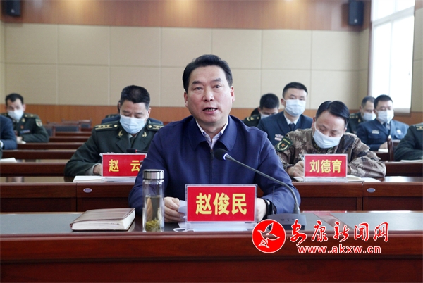 趙俊民強(qiáng)調(diào),要舉旗鑄魂強(qiáng)引領(lǐng),鞏固拓展黨史學(xué)習(xí)教育成果,持續(xù)深入學(xué)習(xí)貫徹習(xí)近平強(qiáng)軍思想,堅(jiān)決、全面、具體、無條件地貫徹軍委主席負(fù)責(zé)制,增強(qiáng)“四個(gè)意識(shí)”、堅(jiān)定“四個(gè)自信”、做到“兩個(gè)維護(hù)”,把堅(jiān)定捍衛(wèi)“兩個(gè)確立”落實(shí)到部隊(duì)建設(shè)實(shí)踐中,確保強(qiáng)軍興軍始終沿著正確方向前進(jìn)。要認(rèn)真落實(shí)新時(shí)代黨的建設(shè)總要求,嚴(yán)格落實(shí)《中國共產(chǎn)黨軍隊(duì)黨的建設(shè)條例》《中國共產(chǎn)黨軍隊(duì)委員會(huì)(支部)工作規(guī)定》,不斷增強(qiáng)各級(jí)黨組織的領(lǐng)導(dǎo)力、組織力、執(zhí)行力。要練兵備戰(zhàn)提能力,堅(jiān)持一切工作向能打仗、打勝仗聚焦,持續(xù)增強(qiáng)全民國防觀念,著力提高國防動(dòng)員能力,不斷加強(qiáng)民兵訓(xùn)練基地和民兵隊(duì)伍建設(shè),突出抓好實(shí)戰(zhàn)化訓(xùn)練,切實(shí)做到召之即來、來之能戰(zhàn)、戰(zhàn)之必勝。