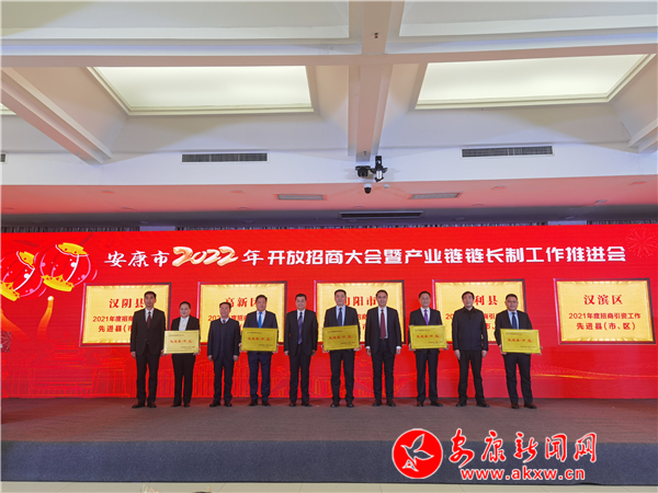 會(huì)議通報(bào)了安康市經(jīng)濟(jì)社會(huì)發(fā)展、重點(diǎn)產(chǎn)業(yè)鏈鏈長(zhǎng)制推進(jìn)、重點(diǎn)產(chǎn)業(yè)方向、營(yíng)商環(huán)境及2022年開放招商重點(diǎn)工作,表彰了2021年招商引資工作先進(jìn)單位和先進(jìn)個(gè)人。李華楓等16名同志聘為安康市開放發(fā)展高級(jí)顧問(wèn)。