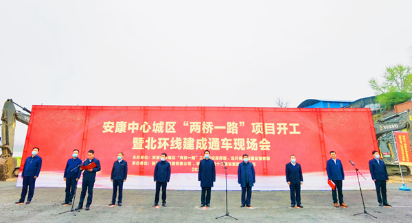 本網(wǎng)訊 (記者 艾蓓)3月22日,安康中心城區(qū)“兩橋一路”項(xiàng)目開工暨北環(huán)線建成通車現(xiàn)場(chǎng)會(huì)在漢濱區(qū)關(guān)廟漢江大橋(二橋)西側(cè)河灘北岸召開。