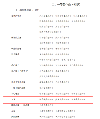 我省共有8部作品榮膺上榜,由安康市委組織部與石泉縣委組織部聯(lián)合拍攝的《入黨》榮獲典型事跡片觀摩評(píng)比一等獎(jiǎng),也是全省唯一1部獲得一等獎(jiǎng)的作品。Rii安康新聞網(wǎng)