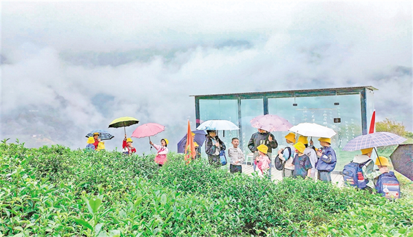 國慶期間,孩子們在紫陽縣向陽鎮(zhèn)的富硒茶觀光園,感受自然風(fēng)光與茶文化的獨(dú)特魅力。 儲(chǔ)茂銀 攝