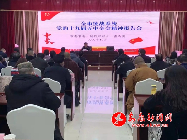 12月9日,市級統(tǒng)戰(zhàn)系統(tǒng)召開黨的十九屆五中全會精神宣講會。市委常委、統(tǒng)戰(zhàn)部部長雷西明圍繞習近平總書記在黨的十九屆五中全會上的重要講話精神,從十三五突出成就……