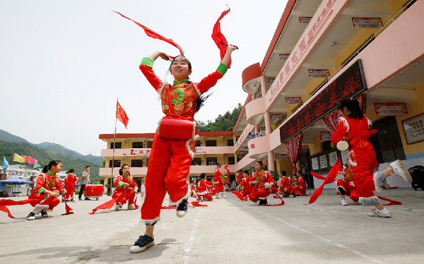 5月26日,陜西省安康市漢濱區(qū)茨溝小學(xué)校園鼓聲如雷,鈸音清脆,鑼鳴鏜鏜。該校高年班同學(xué)為慶祝六一兒童節(jié)開始練習(xí)威風(fēng)鑼鼓。據(jù)了解,茨溝小學(xué)的飛天腰鼓社團共有……