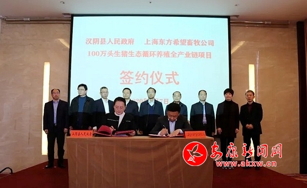 本網(wǎng)訊(通訊員 安政軒)4月7日,漢陰縣政府與上海東方希望畜牧有限公司正式簽署投資合作協(xié)議,標(biāo)志著全市首個(gè)百萬(wàn)頭生豬生態(tài)循環(huán)養(yǎng)殖全產(chǎn)業(yè)鏈項(xiàng)目成功落戶漢陰!