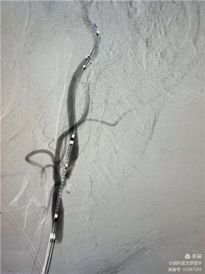 手術(shù)過程:球囊擴(kuò)張后,protege支架到位
