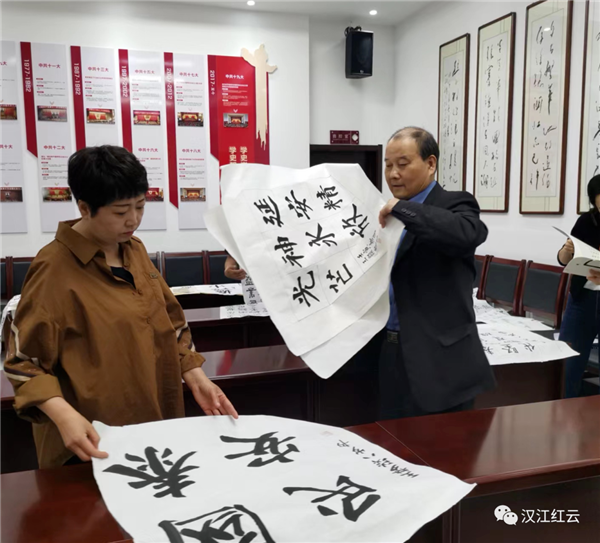 書法評(píng)審組的老師們?cè)谡J(rèn)真評(píng)審。