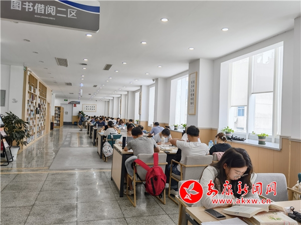 在安康圖書(shū)館筆者看到,圖書(shū)館內(nèi)清涼靜謐、書(shū)香四溢,各個(gè)閱覽室內(nèi)都能看到學(xué)生認(rèn)真閱讀的身影,他們徜徉在書(shū)的海洋,安靜閱讀,給自己“充電”。據(jù)悉,安康圖書(shū)館上午九點(diǎn)開(kāi)門(mén),由于場(chǎng)地有限,容納讀書(shū)學(xué)習(xí)的桌椅不多,所以很多想來(lái)圖書(shū)館看書(shū)學(xué)習(xí)的學(xué)生就會(huì)早早來(lái)排隊(duì)占位。