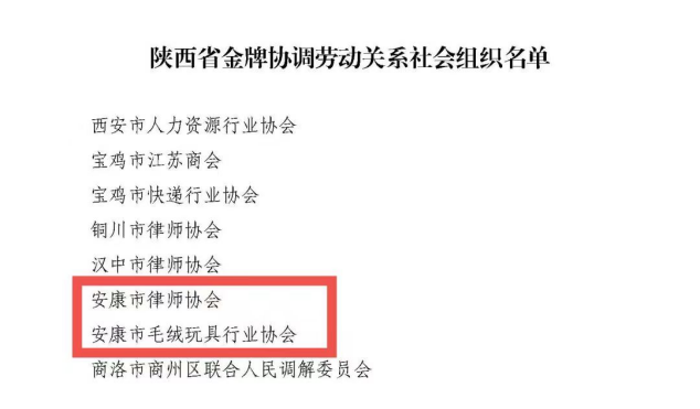 本網(wǎng)訊(通訊員 陳莉)2022年,省協(xié)調(diào)勞動(dòng)關(guān)系三方委員會(huì)在全省范圍內(nèi)廣泛開展“陜西省金牌勞動(dòng)關(guān)系協(xié)調(diào)員”“陜西省金牌協(xié)調(diào)勞動(dòng)關(guān)系社會(huì)組織”評(píng)選活動(dòng)。經(jīng)層層推薦、好中選優(yōu),我市白河縣金龍建材有限公司李東波、高新技術(shù)產(chǎn)業(yè)開發(fā)區(qū)創(chuàng)業(yè)就業(yè)服務(wù)局陳軍等12名同志被認(rèn)定為“陜西省金牌勞動(dòng)關(guān)系協(xié)調(diào)員”,安康市律師協(xié)會(huì)、安康市毛絨玩具行業(yè)協(xié)會(huì)被認(rèn)定為“陜西省金牌協(xié)調(diào)勞動(dòng)關(guān)系社會(huì)組織”。