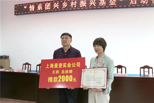 今年5月31日上午,上海曼登實業(yè)有限公司董事長于登玉一行來到旬陽市小河鎮(zhèn)留守兒童關(guān)護中心,為資助“設(shè)施更新項目”捐款5萬元。