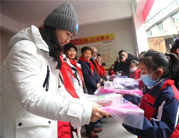 于登玉女兒于婷婷為旬陽市神河鎮(zhèn)留守兒童發(fā)放慰問品