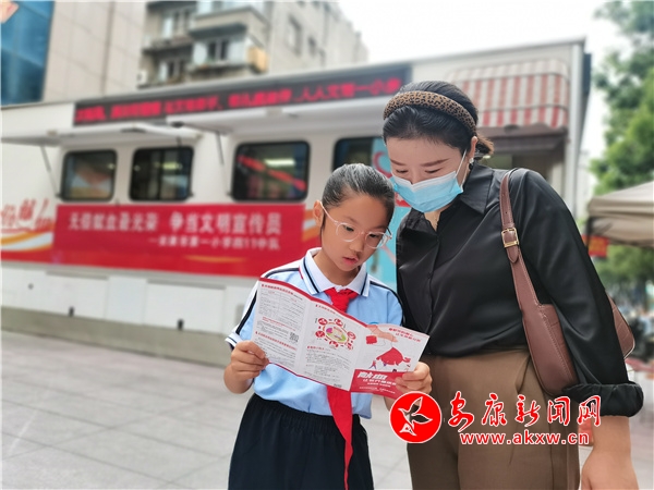 之后,孩子們拿著宣傳冊(cè),進(jìn)入商場(chǎng)、賓館等,向行人、工作人員分發(fā)宣傳冊(cè)。