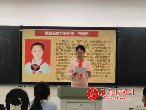 學校利用國旗下講話向全體隊員發(fā)出向“新時代好少年”學習的倡議,該校安康市新時代好少年榮譽稱號獲得者——蘇耘樂講述了她在日常學習和生活上的感受及獲得榮譽稱號的經(jīng)歷和所付出的努力,號召全體隊員們積極行動起來,從一點一滴做起,從一言一行做起,從小樹立遠大的理想,掌握豐富的知識,培養(yǎng)良好的心理素質(zhì),以積極進取迎接未來的挑戰(zhàn)。