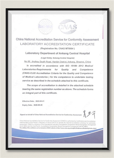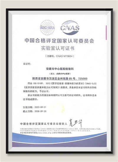 暑退九霄凈,秋澄萬(wàn)景清。在國(guó)慶節(jié)來(lái)臨之際,安康市中心醫(yī)院檢驗(yàn)科正式收到中國(guó)合格評(píng)定國(guó)家認(rèn)可委員會(huì)(CNAS)頒發(fā)的ISO15189醫(yī)學(xué)實(shí)驗(yàn)室認(rèn)可證書(shū),成為ISO15189質(zhì)量與能力認(rèn)可醫(yī)學(xué)實(shí)驗(yàn)室。這標(biāo)志著檢驗(yàn)科質(zhì)量管理水平與技術(shù)能力已達(dá)到國(guó)際標(biāo)準(zhǔn)化水平,向國(guó)際先進(jìn)實(shí)驗(yàn)室行列邁進(jìn),檢驗(yàn)結(jié)果更加精準(zhǔn)可靠,臨床服務(wù)能力實(shí)現(xiàn)再躍升。