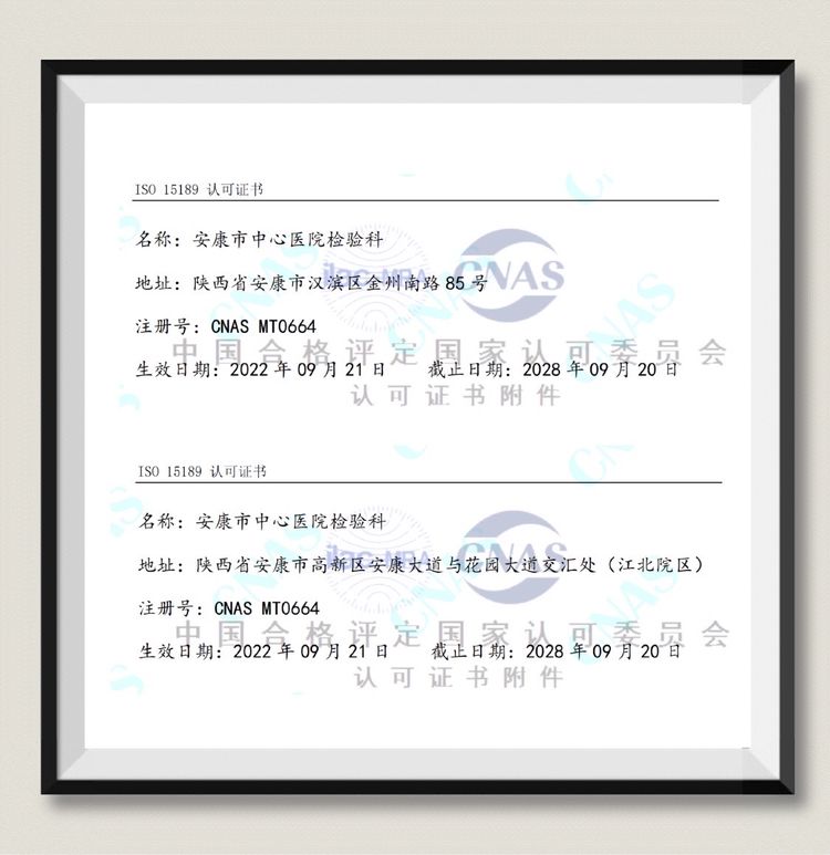 2022年6月24日-26日,由中國(guó)合格評(píng)定國(guó)家認(rèn)可委員會(huì)(CNAS)委派的八名評(píng)審專(zhuān)家經(jīng)過(guò)為期三天的“線(xiàn)上+線(xiàn)下”綜合評(píng)審,安康市中心醫(yī)院檢驗(yàn)科順利通過(guò)ISO15189現(xiàn)場(chǎng)評(píng)審。針對(duì)評(píng)審專(zhuān)家提出的不符合項(xiàng),經(jīng)過(guò)兩個(gè)月整改及持續(xù)改進(jìn),安康市中心醫(yī)院檢驗(yàn)科得到了國(guó)家認(rèn)可委(CNAS)的正式認(rèn)可,并獲得證書(shū)。