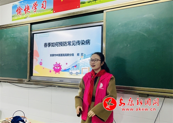 捐贈儀式后,安康市中醫(yī)醫(yī)院志愿者在教室內(nèi)開展了知識講座,為學(xué)生們講解了春季如何預(yù)防常見傳染病、七步洗手法等知識,孩子們聽得津津有味,并和志愿者積極互動。