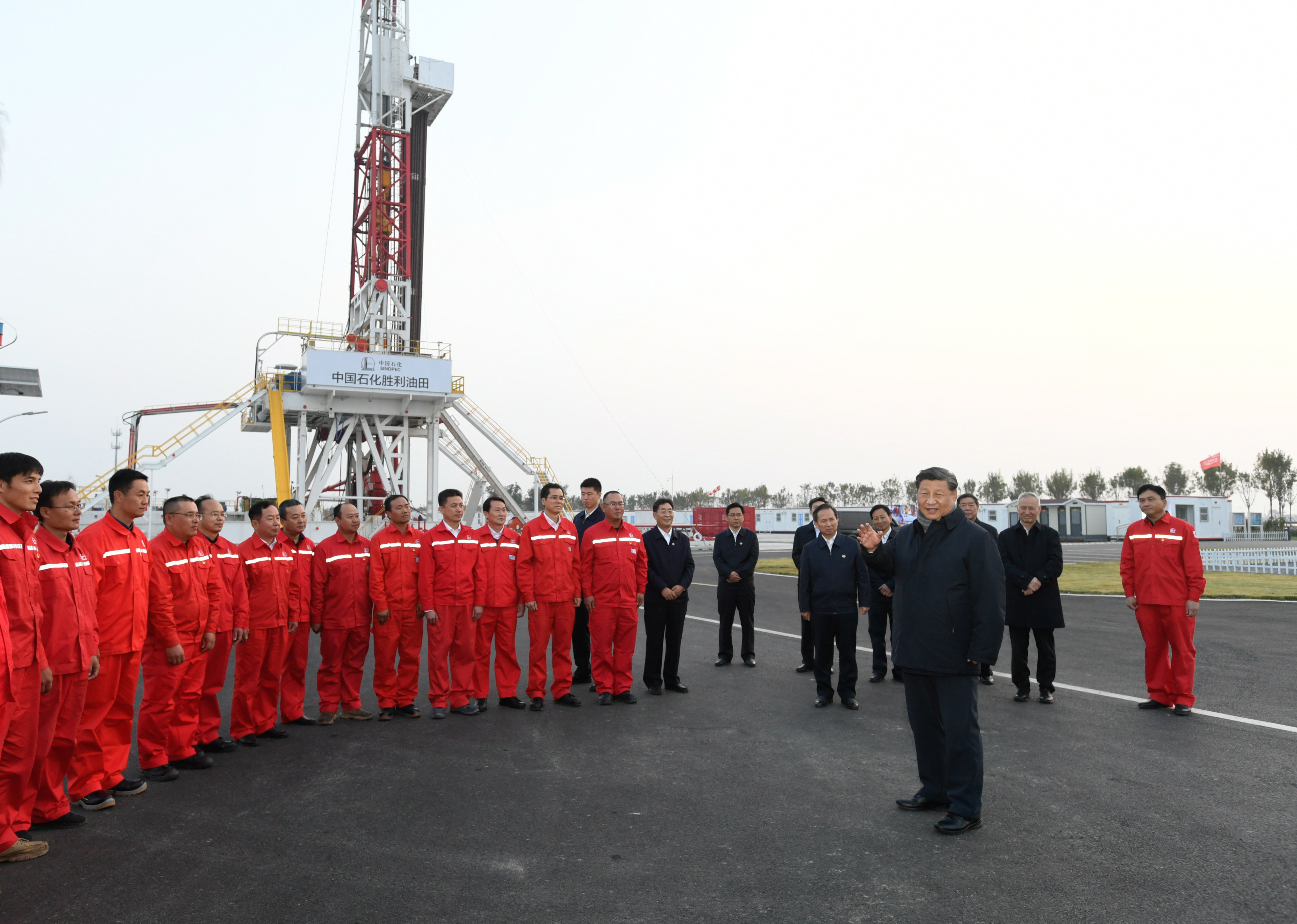 21日下午,習(xí)近平總書記來到勝利油田,登上鉆井平臺,察看作業(yè)情況,看望慰問石油工人。今年是勝利油田發(fā)現(xiàn)60周年。習(xí)近平代表黨中央向廣大石油職工致以誠摯問候。習(xí)近平指出,石油能源建設(shè)對我們國家意義重大,中國作為制造業(yè)大國,要發(fā)展實體經(jīng)濟(jì),能源的飯碗必須端在自己手里。希望你們再創(chuàng)佳績、再立新功。