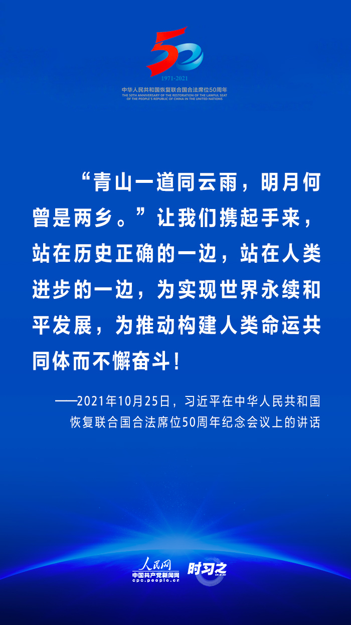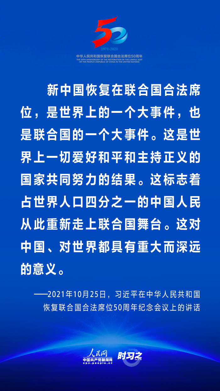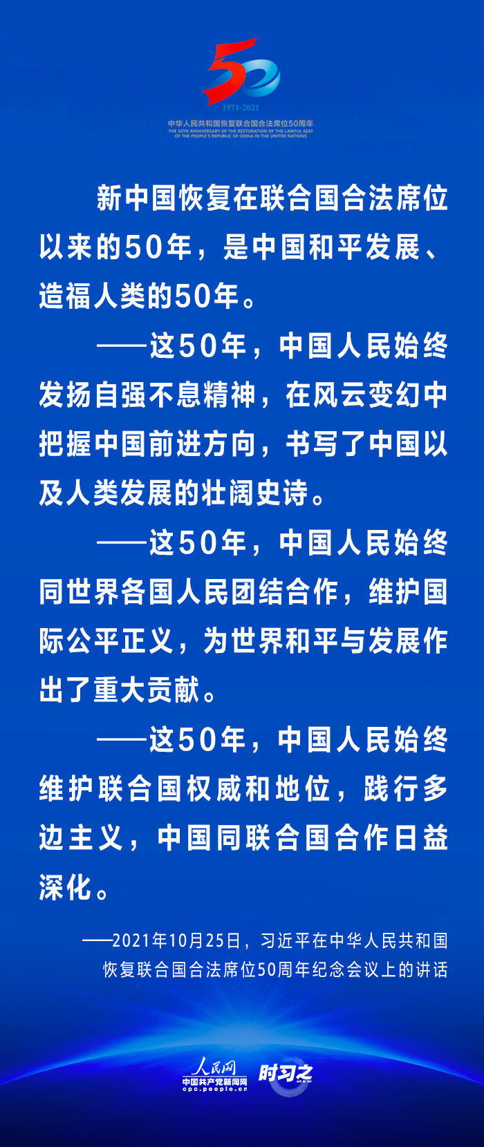 10月25日,國家主席習(xí)近平在北京出席中華人民共和國恢復(fù)聯(lián)合國合法席位50周年紀(jì)念會議并發(fā)表重要講話。在講話中,習(xí)近平回顧了中華人民共和國恢復(fù)在聯(lián)合國合法席位50年以來的重大成就,面對百年未有之大變局,重申中國將始終做世界和平的建設(shè)者、全球發(fā)展的貢獻(xiàn)者和國際秩序的維護(hù)者。 WTT安康新聞網(wǎng)