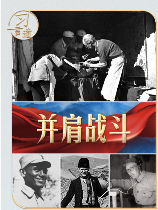 印度醫(yī)生柯棣華、法國(guó)醫(yī)生貝熙葉、德國(guó)人約翰·拉貝、丹麥人辛德貝格、英國(guó)人林邁可、國(guó)際主義戰(zhàn)士漢斯·希伯、蘇聯(lián)飛行大隊(duì)長(zhǎng)庫(kù)里申科、美國(guó)“飛虎隊(duì)”......他們的事跡,習(xí)近平總書(shū)記曾多次動(dòng)情講述?倳(shū)記還在國(guó)內(nèi)外重要場(chǎng)合為曾幫助和支持中國(guó)抗戰(zhàn)的國(guó)際友人頒獎(jiǎng),向他們致敬。