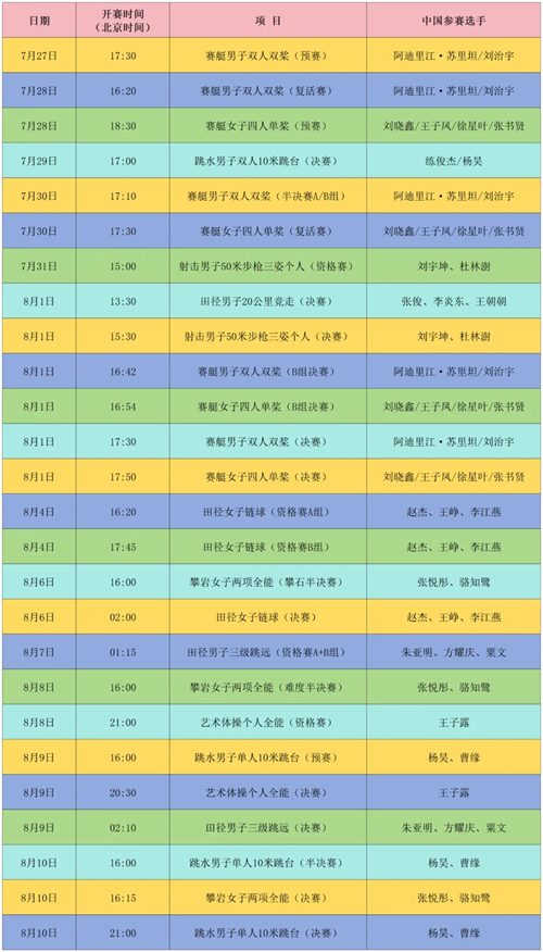 目前,十名運動員的賽程已確定,具體如下↓↓↓