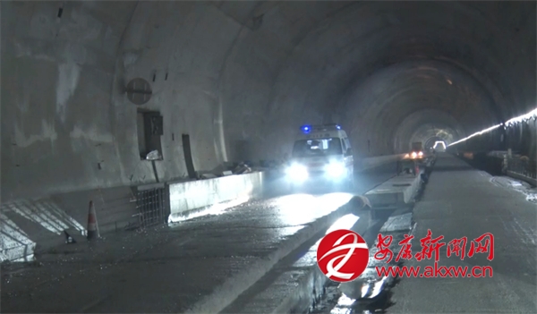 △ 救護(hù)車搶救病人在鳳凰山隧道內(nèi)穿行