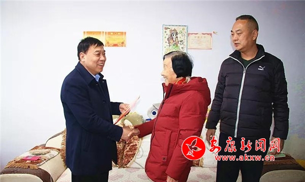 在因公犧牲民警劉開(kāi)盤親屬居室,李友良副局長(zhǎng)向劉開(kāi)盤的遺孀王群英老人送來(lái)了新春的美好祝福及慰問(wèn)金,親切地詢問(wèn)了老人生活、身體狀況和面臨的困難,囑咐家屬照顧好老人起居生活,有困難要及時(shí)向組織提出,以積極樂(lè)觀心態(tài)面對(duì)生活。王群英家屬對(duì)市局領(lǐng)導(dǎo)的關(guān)心和慰問(wèn)表示由衷感謝。